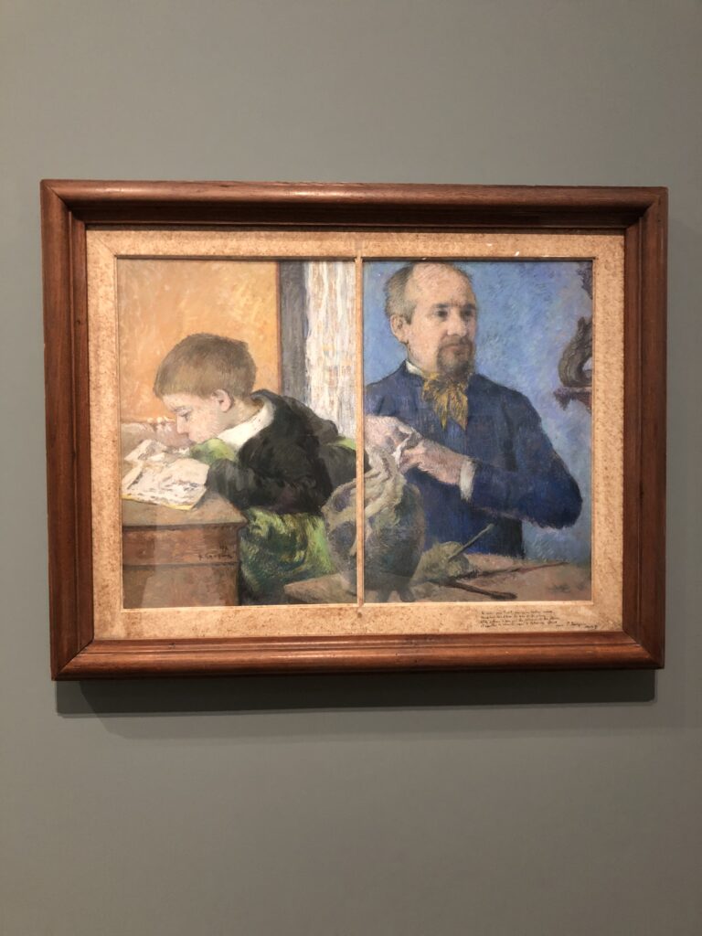 Parmi les œuvres plus anciennes, j’ai eu un coup de cœur pour un très beau pastel de Gauguin, « Le Sculpteur Aubé et son fils, Émile », datant de 1882. C’est dans ces moments qu’on comprend tout l’intérêt de voir les œuvres EN VRAI. En s’approchant du tableau, on ressent toute la douceur du pastel, velouté et lumineux.