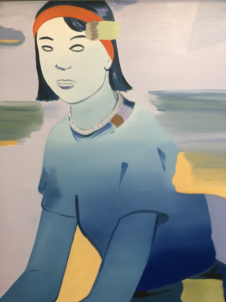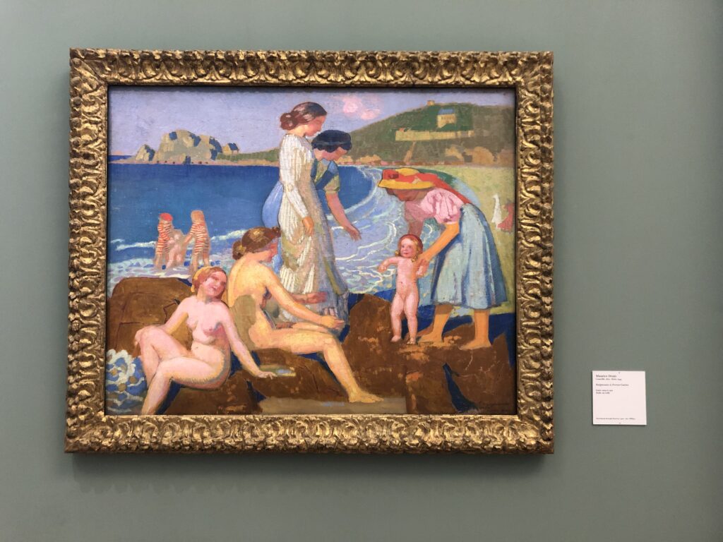 Dans les collections permanentes, on retrouve également Françoise Pétrovitch qui dialogue avec les « Baigneuses à Perros-Guirec » de Maurice Denis. Les couleurs pures, ocres, bleus et oranges, créent un tableau lumineux et vibrant qui là encore fait hommage aux Nabis dont Maurice Denis était un des membres. Décidemment, je ne me lasse pas de suivre l’évolution de Françoise Pétrovitch qui en quelques traits figure des personnages à la fois très présents et fantomatiques. La simplification de son dessin mêlée à une palette chromatique qui procure l’émotion me parle énormément.
